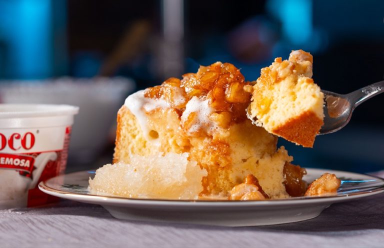 Retire do forno. Corte em fatias e sirva com uma generosa colherada de Cocada Cremosa Branca Sococo