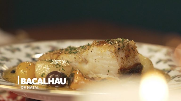 Tainha no bacon, molho vermelho e bolinho de milho com coco